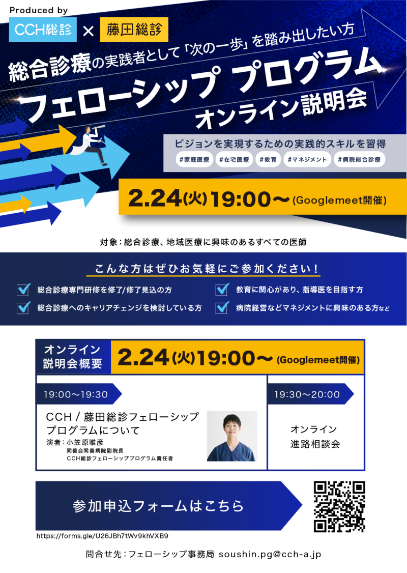 2/24 CCH/藤田総診フェローシップ 第1回オンライン説明会