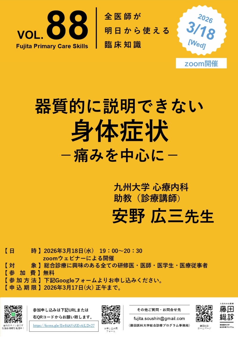 PCS3/18 藤田PCS 「器質的に説明できない身体症状-痛みを中心に-」安野 広三先生