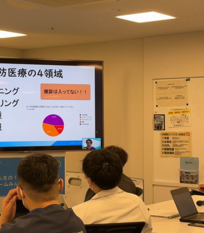 今回はオンラインで東京の同善病院梅沢先生、水海道さくら病院の西先生より、「予防医療」をテーマに講義いただきました。
